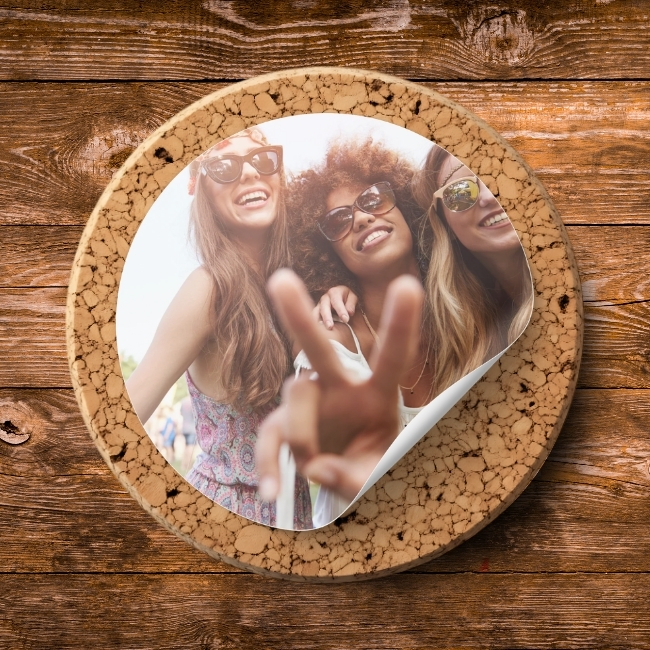 Crea tus posavasos personalizados con nuestro Pack de 5 unidades de corcho ø9,5 cm.