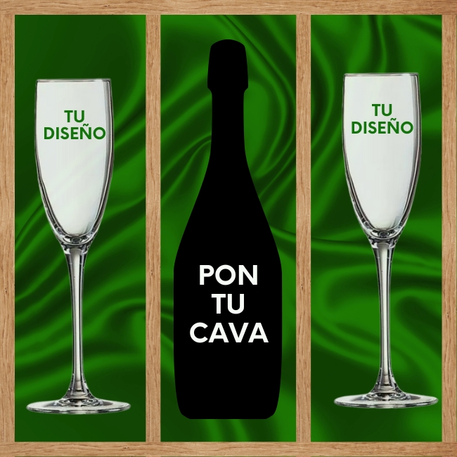 Haz que cada brindis cuente una historia con nuestro Kit Pon Tu Cava con Copas y Caja de Madera 100% Personalizados.