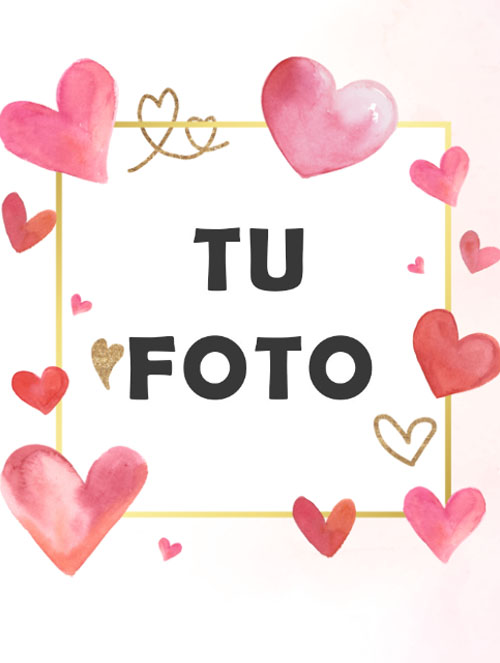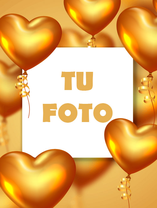 Etiqueta para vinos de san Valentín dorada con corazones, puedes cambiar la foto, editar y añadir textos