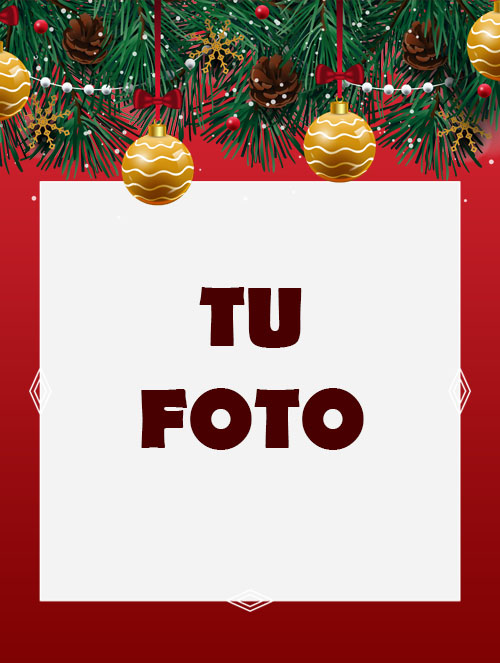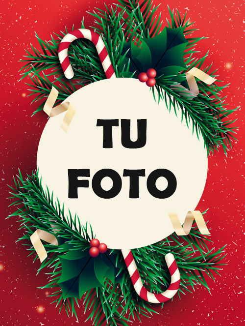 Etiqueta para vinos de Navidad color rojo y guirnaldas, puedes cambiar la foto y editar y añadir textos.