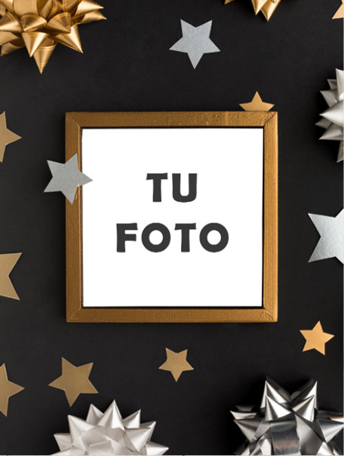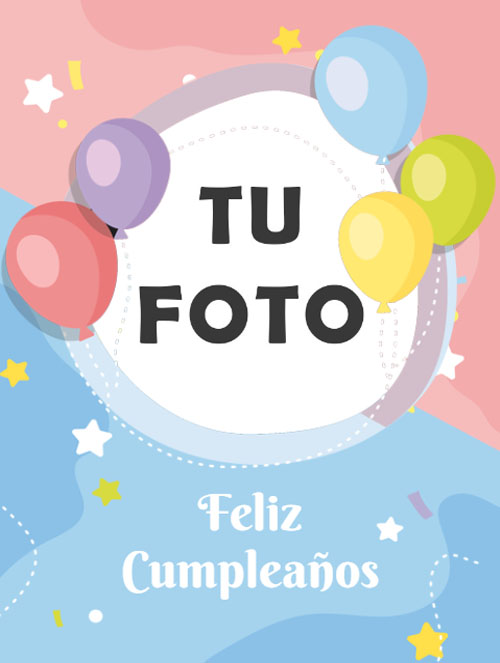 Etiqueta para vinos de cumpleaños con estrellas y confetien la que se puede modificar los textos, añadir más objetos y editar la foto.