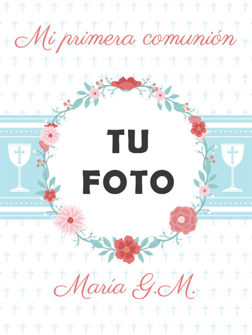 Etiqueta de vino floral, especial para comuniones, cambia la foto de fondo y los textos, haz que el día de su primera comunión sea especial con este vino personalizado.