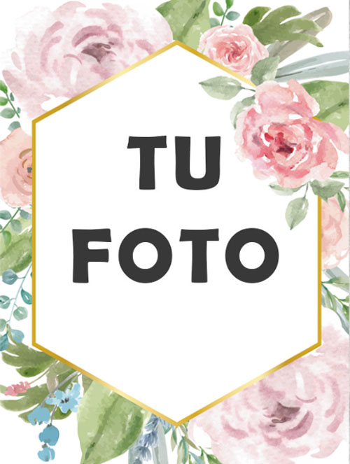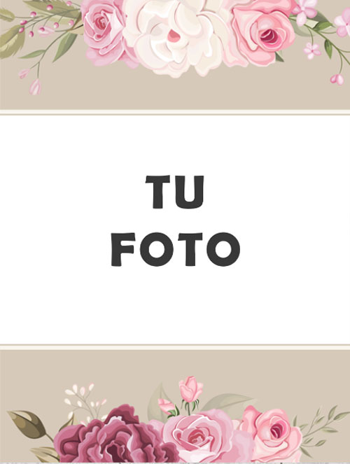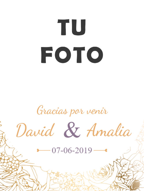 Etiqueta para bodas y enamorados floral,en la que se puede modificar la imagen de los novios,los textos y añadir más objetos.