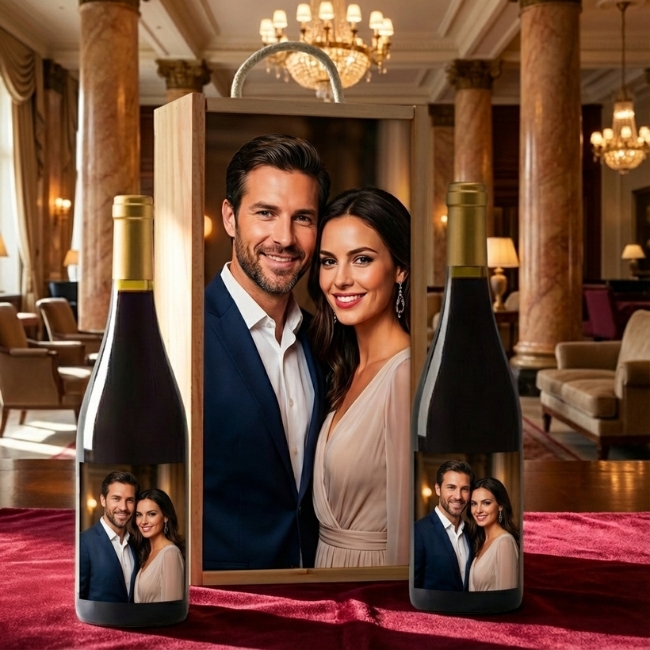 Personaliza tu kit de 2 vinos con caja con fotos y textos, personaliza las etiquetas delantera y trasera, personaliza la caja de vino de madera, con mensajes, dedicatorias, agradecimientos, y mucho más. Haz un regalo personalizado, único y original donde marcarás la diferencia.