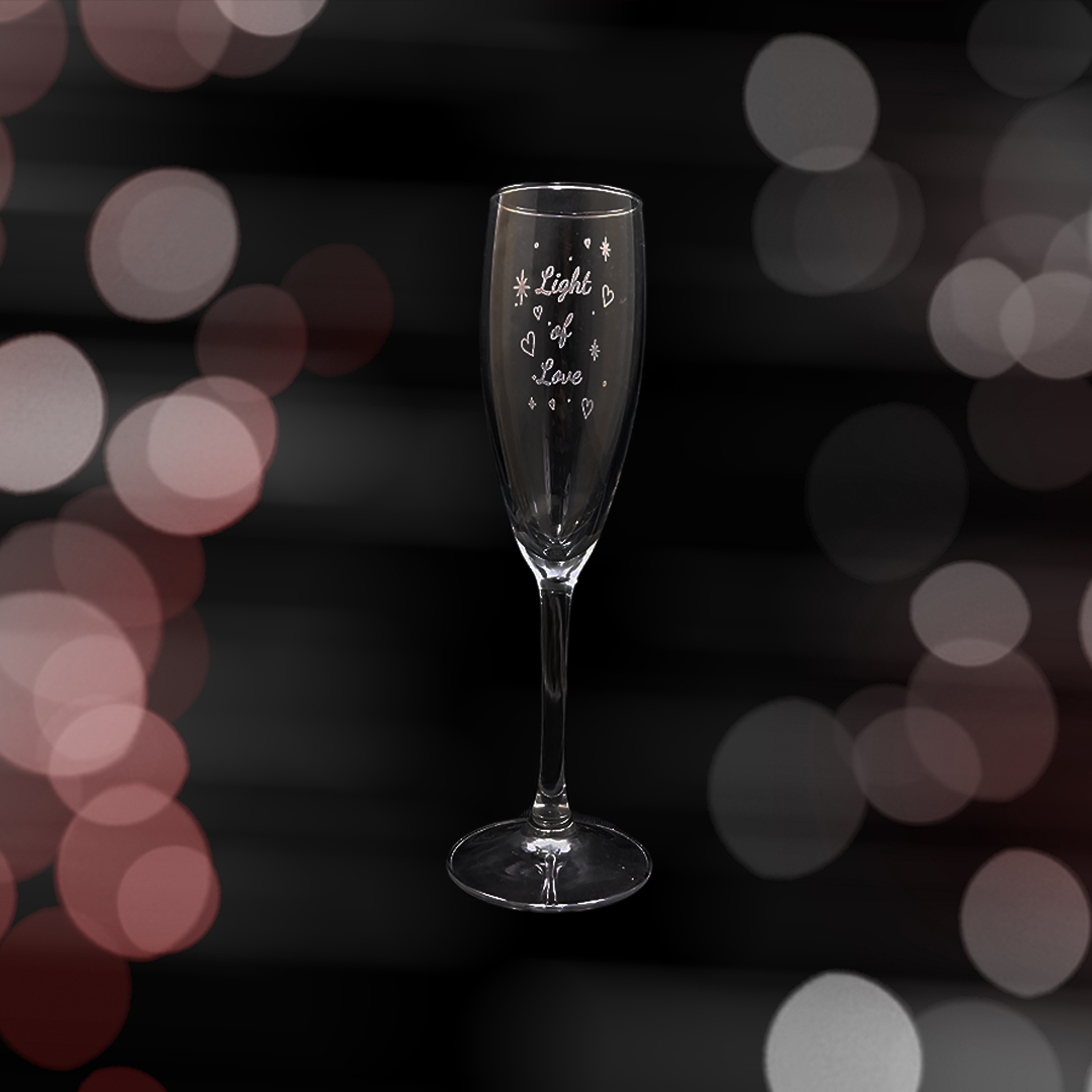 Kit de 1 copa de cava grabada a punta de diamante con estuche de madera personalizado Modelo Light Of Love.