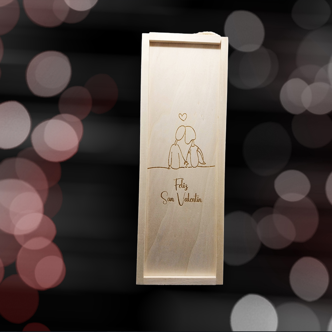 Juega y diviértete creando tu Kit de 1 copa de cava grabada con estuche de madera personalizado Modelo San Valentín.