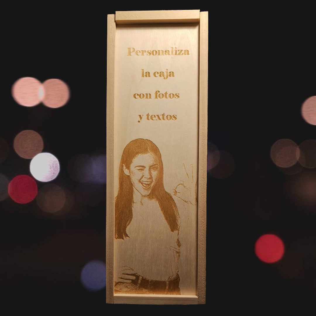 Personaliza tu Kit de 1 copa de vino grabada con estuche de madera personalizado con fotos y textos, personalizada la copa y personaliza la caja de madera, con mensajes, dedicatorias, agradecimientos, y mucho más. Haz un regalo único y original donde marcarás la diferencia.