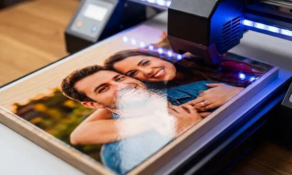 Kit de 2 copas de vino grabadas con estuche de madera y tapa de metacrilato personalizada a color
