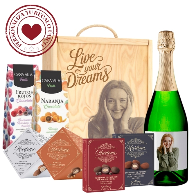 El Espumoso Reserva Brut Nature aporta burbujas finas, frescura y un carácter seco que contrasta y realza los sabores de esta cuidada selección de chocolates finos y pralinés. Una combinación ideal para regalar momentos de dulzura y sofisticación con un toque chispeante.